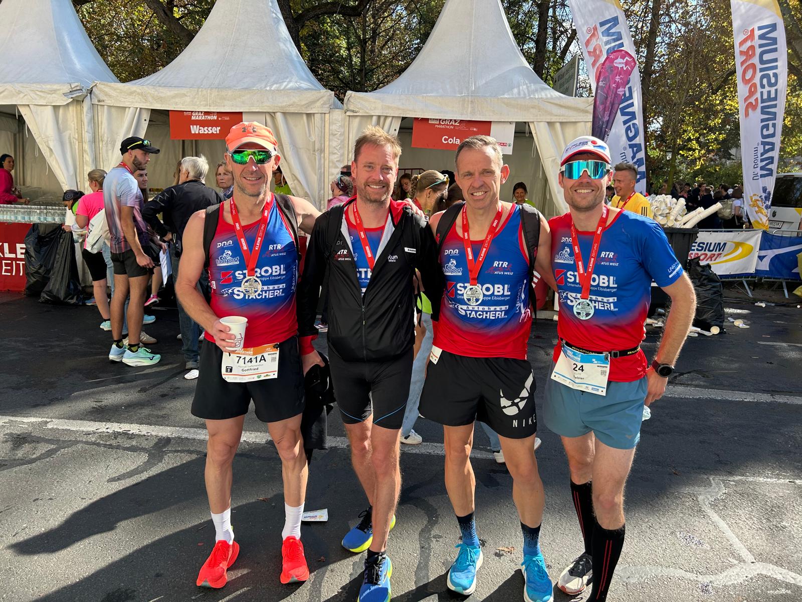 Auch die Herrenstaffel mit Gottfried Grabner, Gerald Schwarzl, Stefan Fleck und Bernd Winter zeigte eine starke Leistung. Mit einer Endzeit von 02:38:44 Stunden verpassten sie das Podest nur knapp und belegten Rang vier.