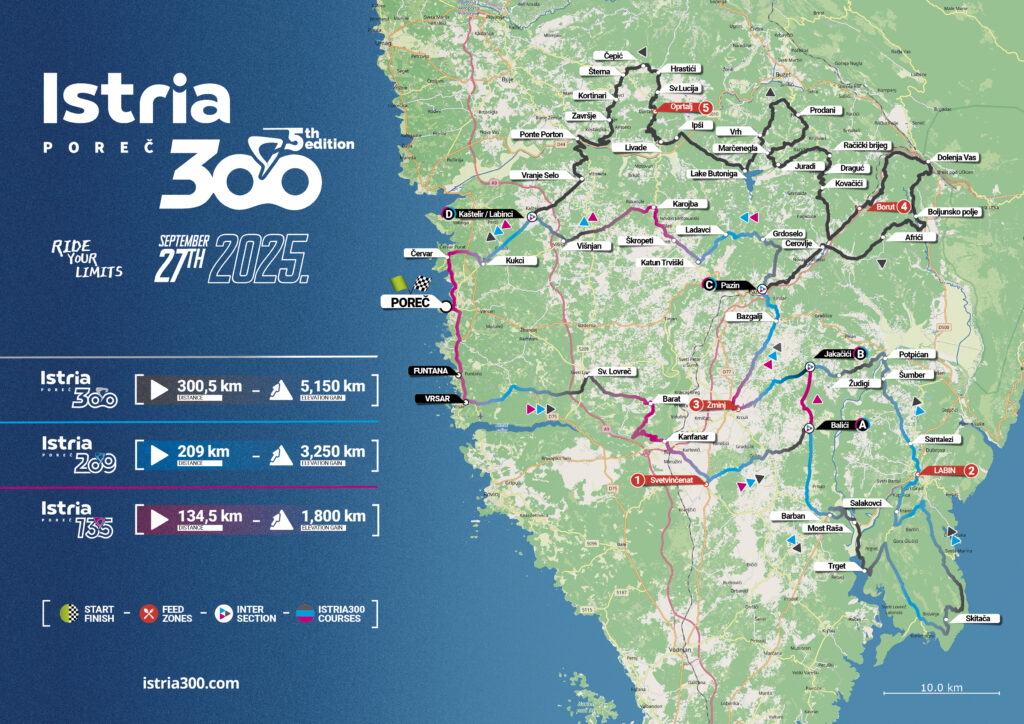 Am Samstag, dem 27. September, fiel um 7 Uhr morgens bei 13 Grad, aber schönem Wetter der Startschuss für über 4000 Teilnehmerinnen und Teilnehmer aus 39 Nationen. Die ersten Kilometer führten die Fahrerinnen und Fahrer in dicht gedrängtem Feld und durch zahlreiche Kreisverkehre nach Funtana und Vrsar, ehe sich nach rund 23 Kilometern die Hektik legte und die Strecke ins istrische Hinterland führte.