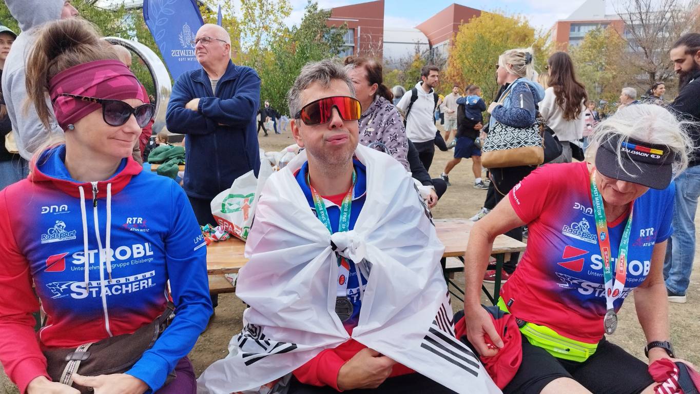 Gegen halb elf gingen schließlich die Halbmarathonläufer Simon Jenewein, Johannes Kopp und Sylvia Moser an den Start. Alle drei finishten gesund und zufrieden: