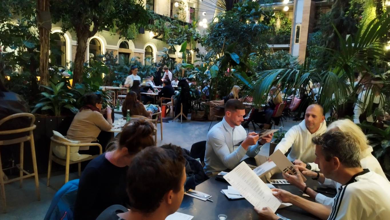 Nach dem sportlichen Teil wurden in der Hotellobby noch einige „hopfenhaltige Elektrolygetränke“ verkostet und später im „Jungle Restaurant“ namens 26 gemeinsam zu Abend gegessen. Reiseleiter Johannes Kopp führte die Gruppe danach noch in eine Cocktailbar und schließlich in eine große Musicbar, wo der ereignisreiche Tag bei einem Fröccs gemütlich ausklang.
