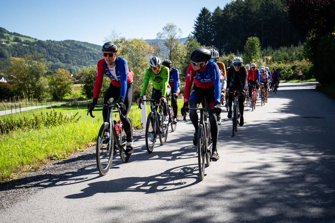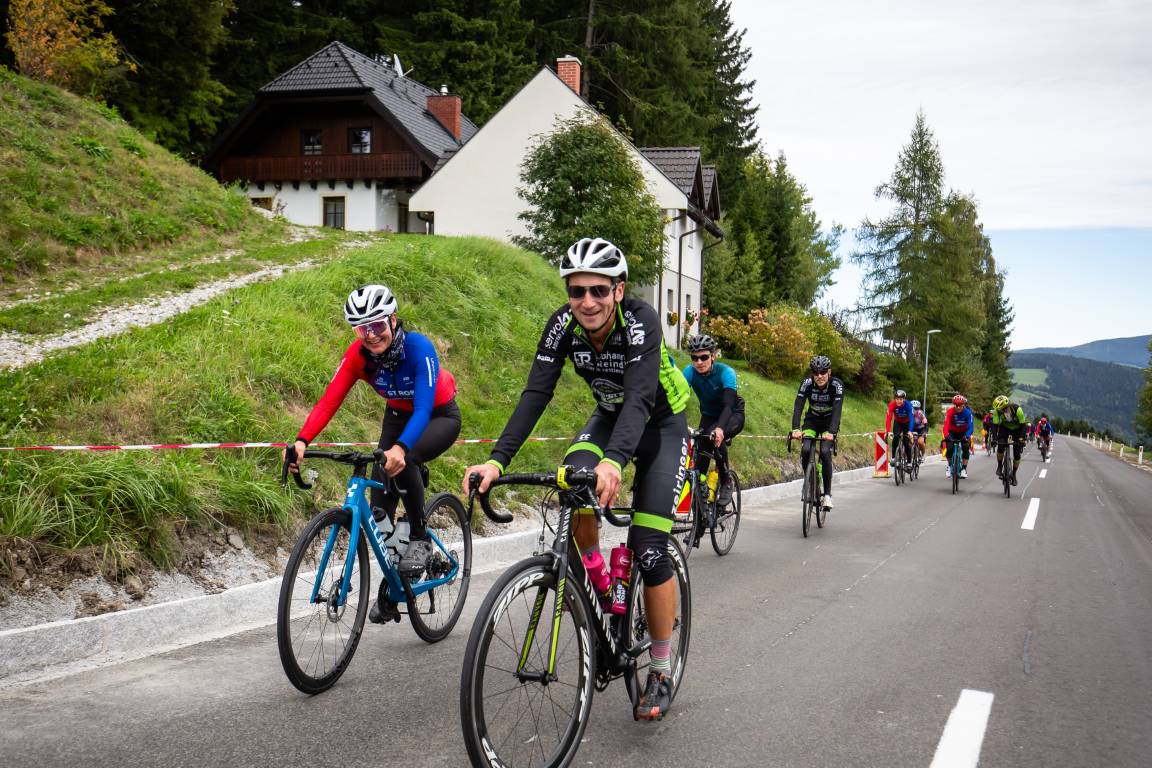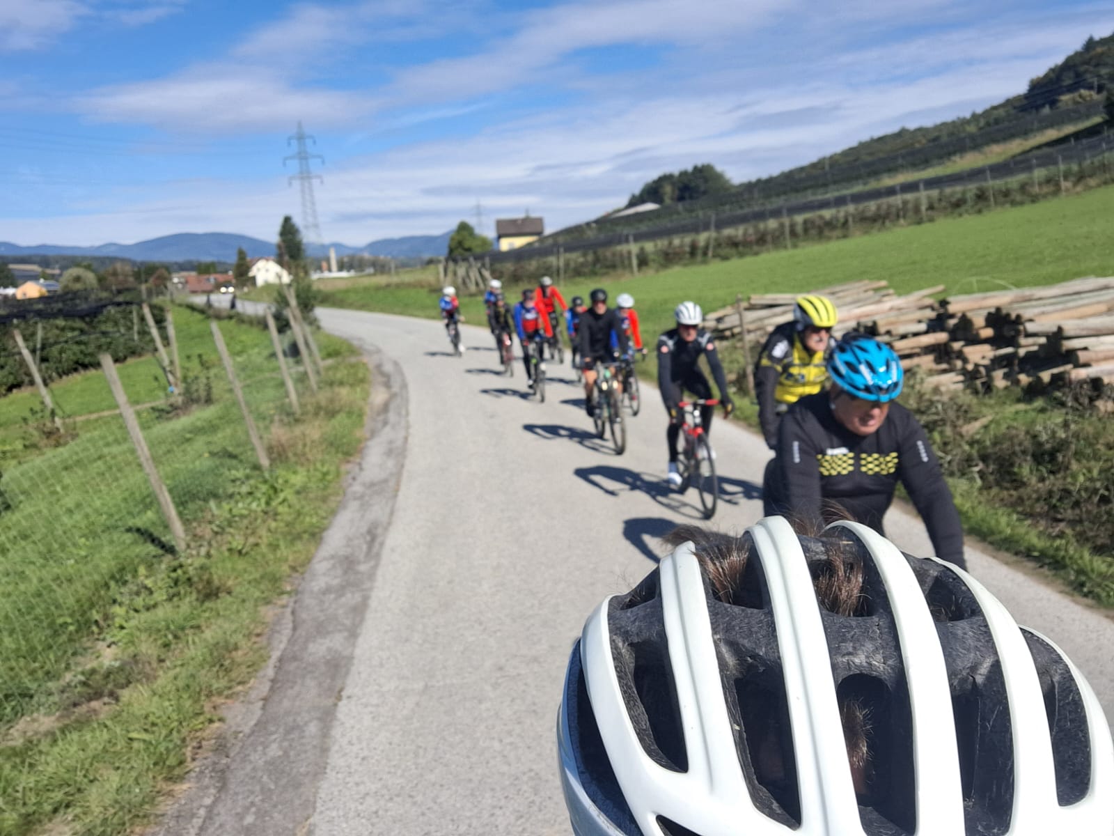 Bei etwas kühlem, aber trockenem Herbstwetter führte die kürzere Runde über Greith, St. Ruprecht, Schloß Freiberg, Eggersdorf, Kumberg, Gschwendt und der Bergwertung Grillbichl zurück nach Weiz – 57 Kilometer mit rund 800 Höhenmetern. Gravel- und Mountainbikes nutzen manch Schotter- und Wurzelweg entlang der Strecke.